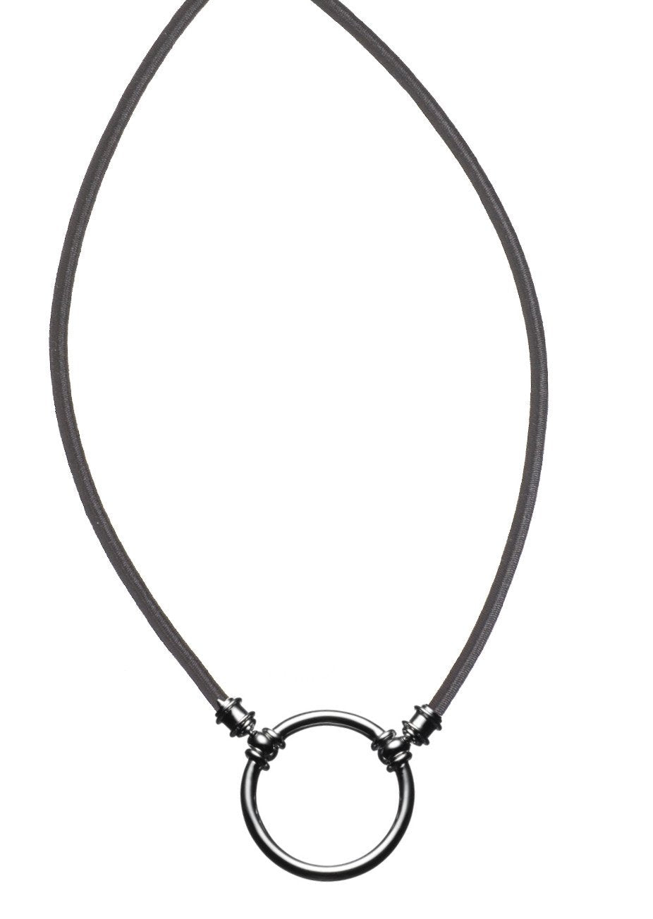 This style is loved for its versatility- casual, everyday silk stretch in black with a silver plated loop so you can dress it up! Stretches over the head and popular for both men and women.