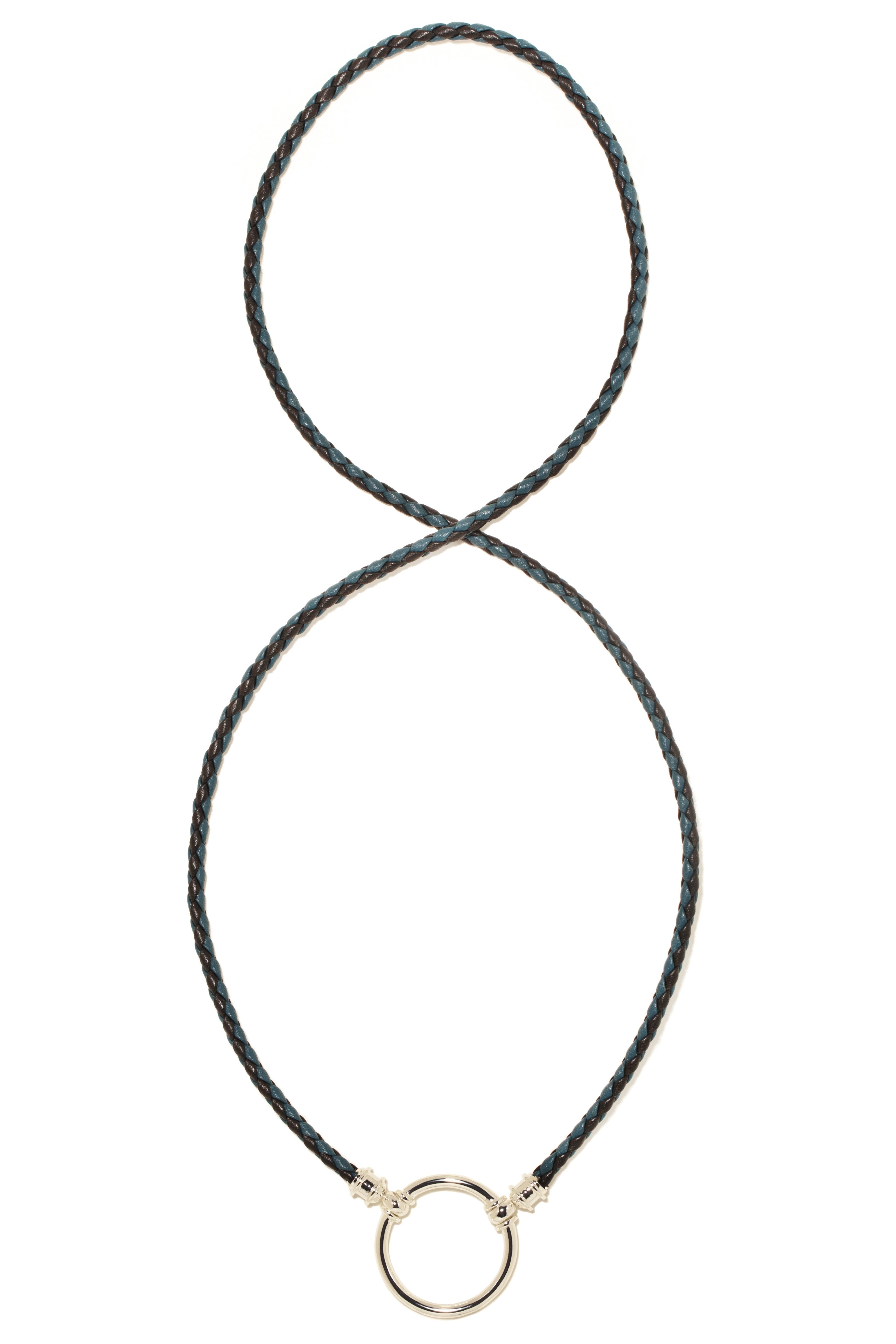 This is fun twist on our classic braided styles. The black and cobalt blue Italian Braided Leather in this piece is handmade in a 5th generation mill outside of Venice Italy. Paired with a silver-plated loop, this two-toned leather piece adds a bit of spark to your outfit.