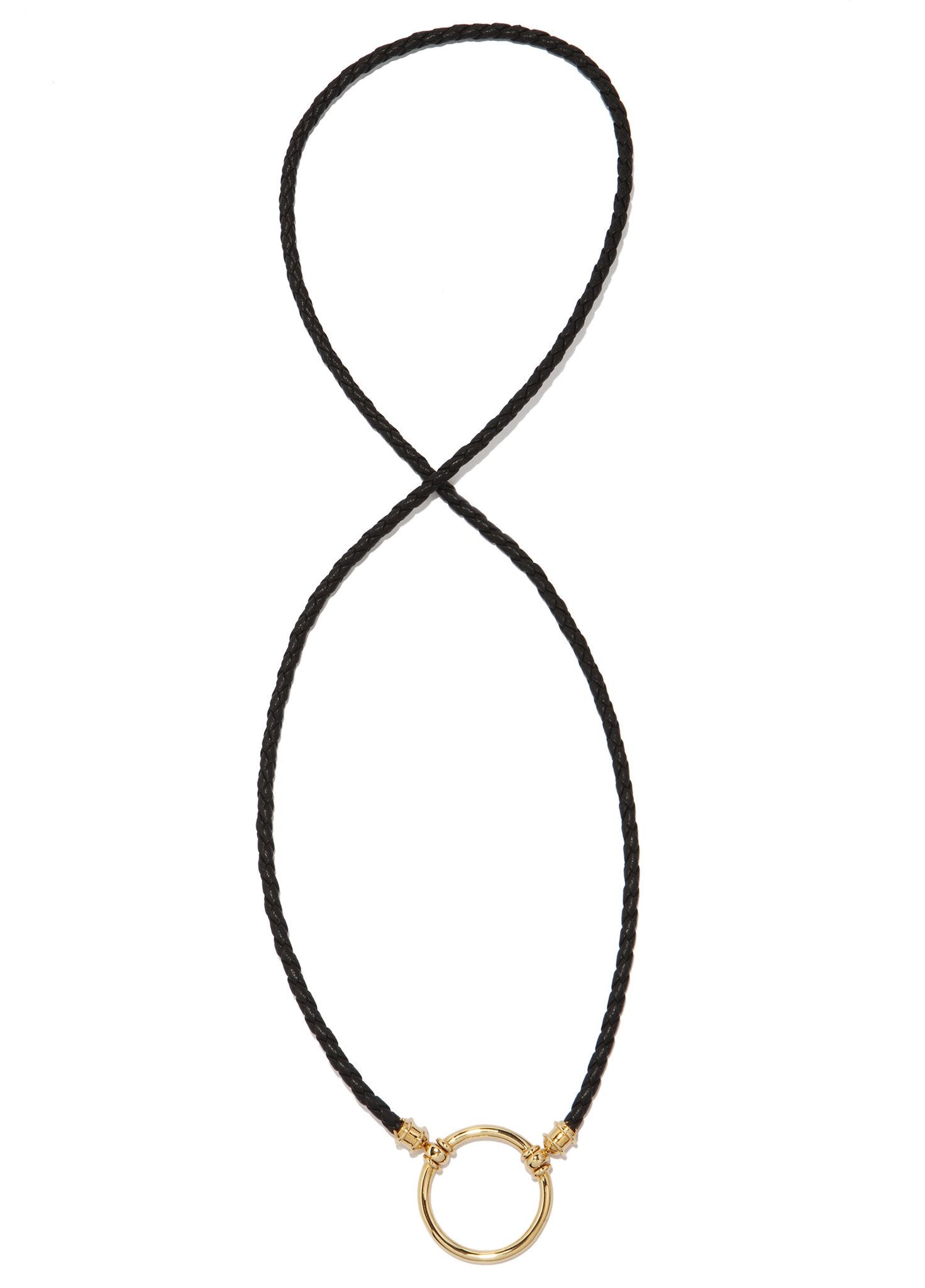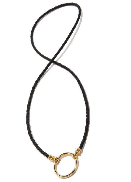 The black Italian braided leather in this piece is handmade in a 5th generation mill outside of Venice, Italy. This style, perfect for both men and women, can be worn throughout your workday and translates as a fashionable accessory for your evening outings. Material: Italian Braided Leather in Black (3.5mm) Loop: 23mm in diameter; Silver Plated w/ Vermeil 14K Plated Finish Necklace length: 25 inches