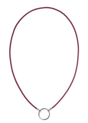 The red Italian smooth leather in this piece is handmade in a 5th generation mill outside of Venice, Italy. Material: Italian Smooth Leather in Red Loop: 23mm in diameter; Silver Plated Necklace length: 25 inches