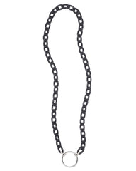 This piece is a version of the very first La LOOP (001LP)! The small black oval links (12x16mm) are made from hand-finished acetate resin. This style is great for casual weekend wear, yet translates to a professional setting as well. Material: Italian Hand-finished Acetate in Black Loop: 23mm in diameter; Silver Plated Necklace length: 25 inches