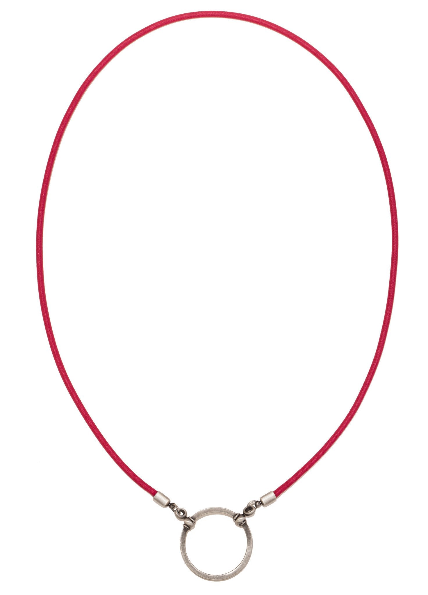 From our bridge line, LOOOP, our silk stretch styles add just the right chic and sporty touch. These stretch over the head and are popular styles for both men and women. The dark, rich, ruby color pairs beautifully with an antique silver loop in this piece.
