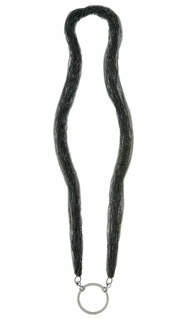 Layers of matte black copper based chain paired with a gunmetal loop from the LOOOP Collection. 25 inches.