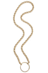 From our bridge line, LOOOP, this piece has an air of sophistication and elegance, making it a standout style. This style shines gold from the chain to the loop.
