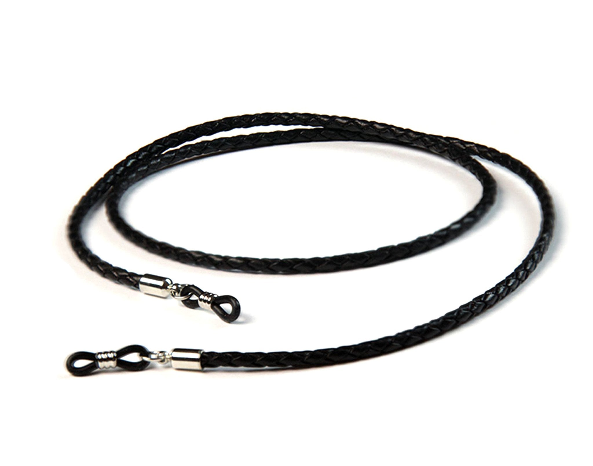 Your glasses will never be out of sight with this braided black leather leash! Its handmade, durable and fashionable design makes it ideal for everyday wear. The 3mm leather cord is 25 inches long with rubber tips closed with a 1 inch silver finding (all made by hand!).