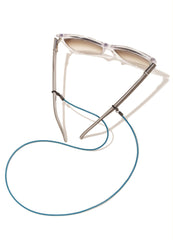Keep your glasses from getting lost with this handmade aqua leather leash. Designed in house in Los Angeles, this piece has chic gold accenting and is perfect for any occasion.