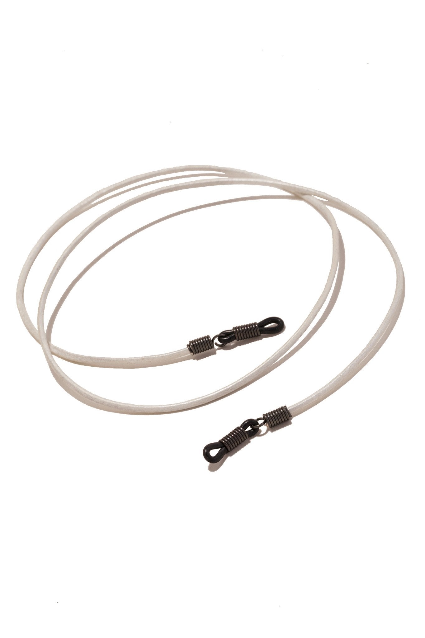 Keep your glasses from getting lost with this handmade metallic white leather leash. Designed in house in Los Angeles, this piece has chic gold accenting and is perfect for any occasion.