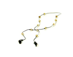 Fashion meets function in this black elastic and light brown Swarovski crystal leash. Handmade and designed in Los Angeles, the striking contrast between the dark cord and light crystals creates the beautiful design of this must-have piece. Every leash has 12 crystals spaced 1.5 inches apart.